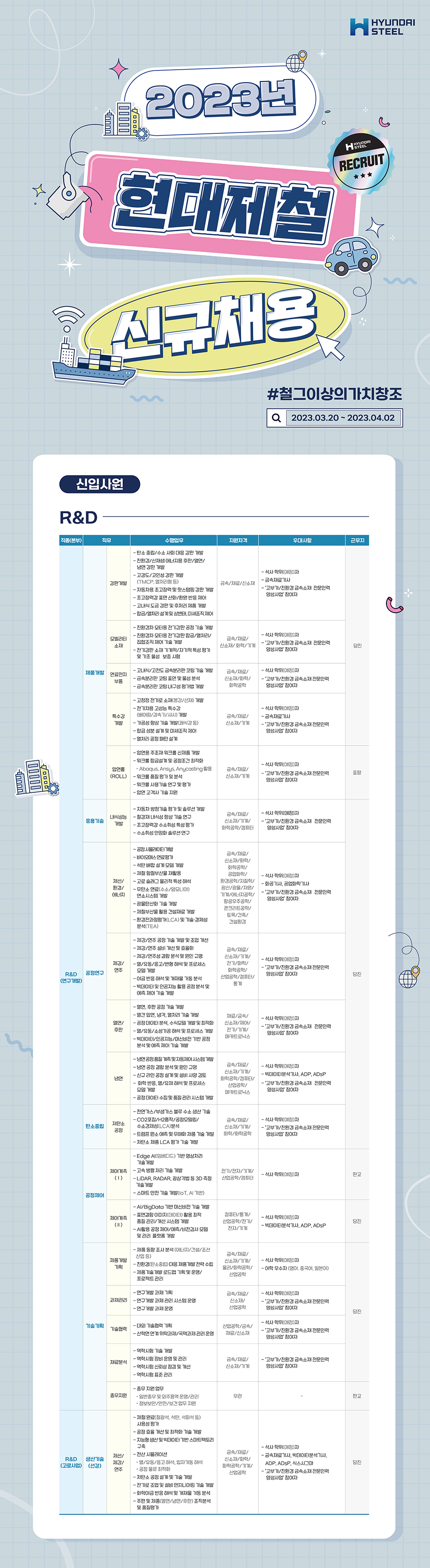 [공고] 현대제철 채용 안내 (3.30. 13:00-, 제2공학관(재료관) 1층