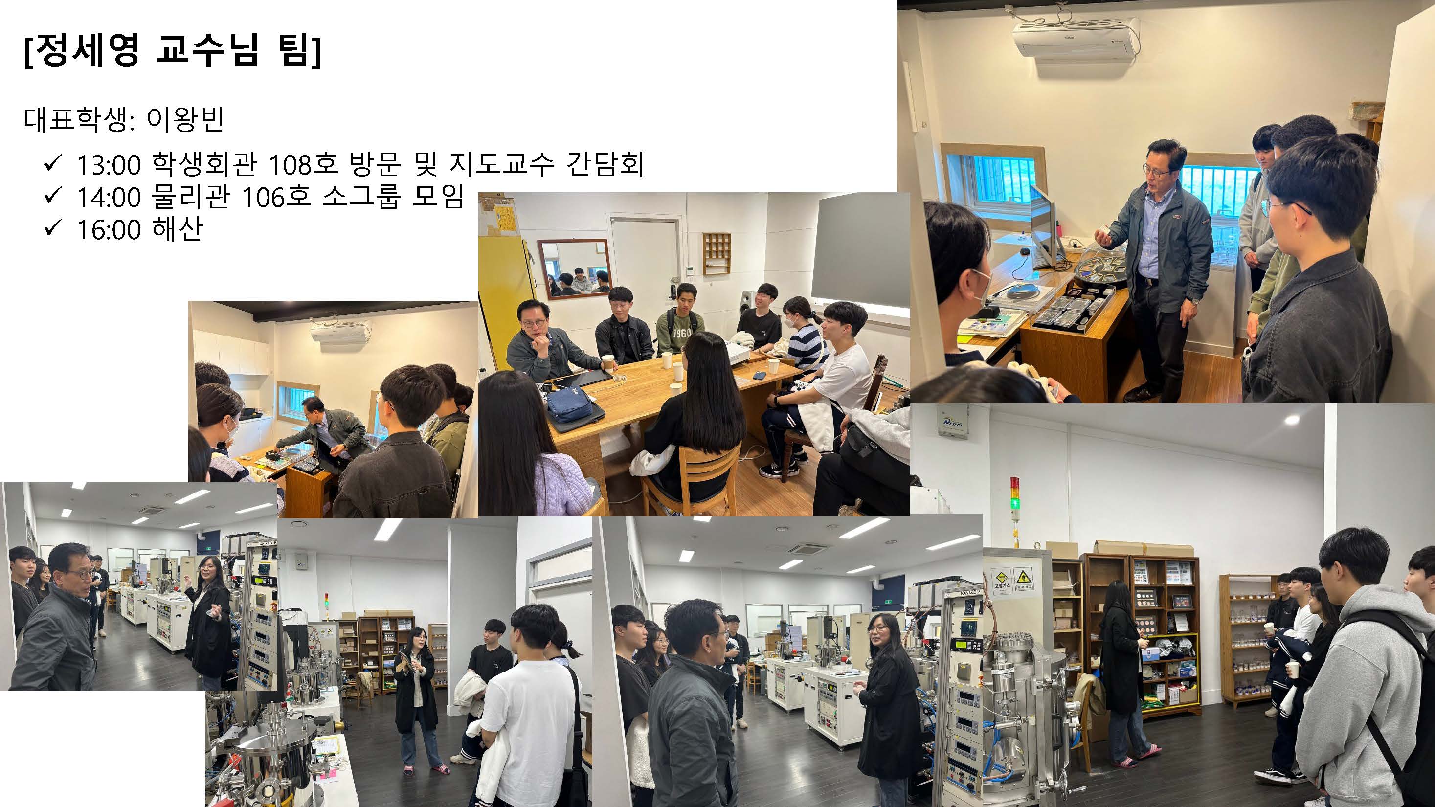 1. 일시: 2023.11.15.(수), 12:002. 장소: 공동연구소동 515호3. 연사: 이휘돈 교수님4. 연제: 나노과학기술대학 학생에서 교수까지의 여정5. 지원: 김창석 교수님